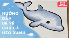 Vẽ và tô màu cá heo xanh